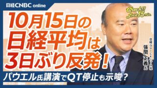 日経CNBC 【10月15日(水)東京株式市場】日経平均株価は3日ぶり反発/高市銘柄中心に買い戻し/金上昇は米国スタグフレーション懸念?/AI関連はバブル状態か/パウエル氏講演で年内2回利下げか/QTの停止も示唆【日経CNBC】 【10月15日(水)東京株式市場】日経平均株価は3日ぶり反発/高市銘柄中心に買い戻し/金上昇は米国スタグフレーション懸念?/AI関連はバブル状態か/パウエル氏講演で年内2回利下げか/QTの停止も示唆【日経CNBC】マーケット・経済専門チャン... 2025.10.15 日経CNBC