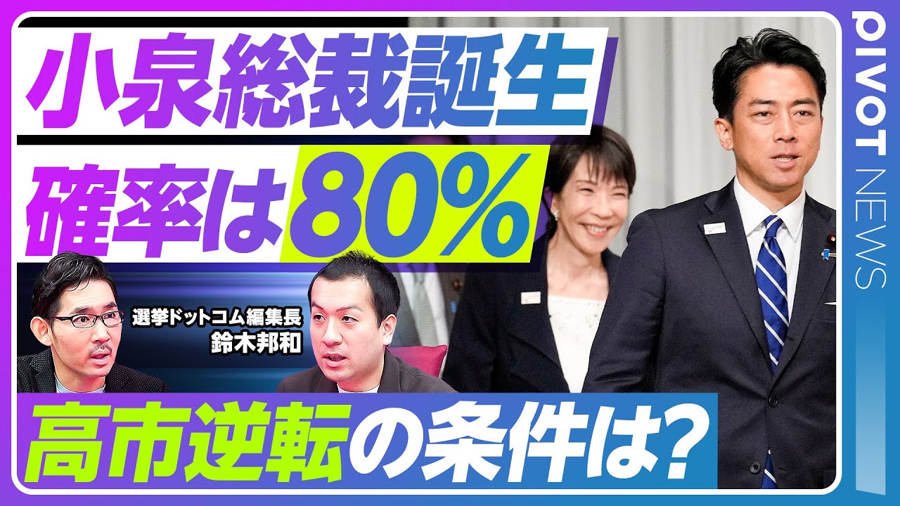 【総裁選最新予測:小泉総裁誕生の確率は80%】全派閥に広がる小泉支持/石破票の多くは小泉票に/20票差なら高市逆転も/官房長官・幹事長は誰か/それでも自民党復活が難しい理由【PIVOT】