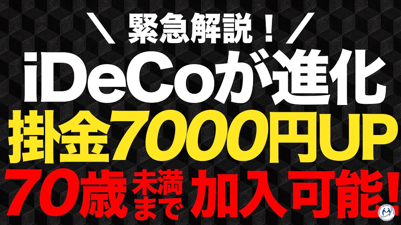 この動画では『iDeCo掛け金上限7000円アップ、2027年1月、70歳未満まで加入可能に』を学ぶ事ができます!