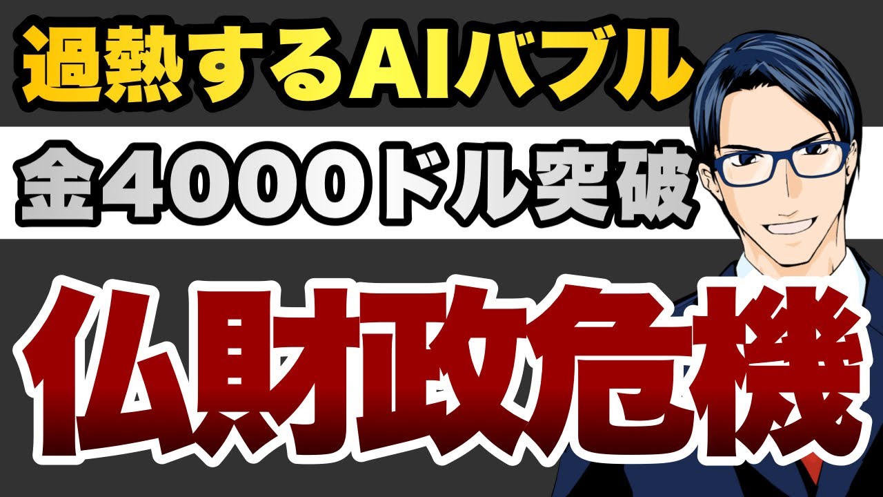 この動画では『①過熱するAIバブル ②金4000ドル突破 ③仏財政危機』を学ぶ事ができます!
