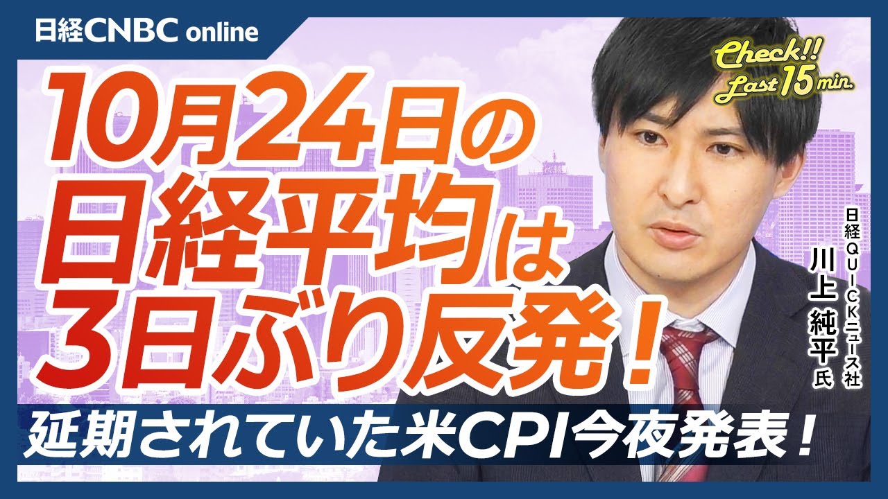 【10月24日(金)東京株式市場】日経平均株価は反発/30日米中首脳会談で米中対立懸念後退か/キオクシアはサンディスクの上昇受け17%超の上昇/インテル純利益黒字化でSBGに追い風/今夜米国CPI発表【日経CNBC】