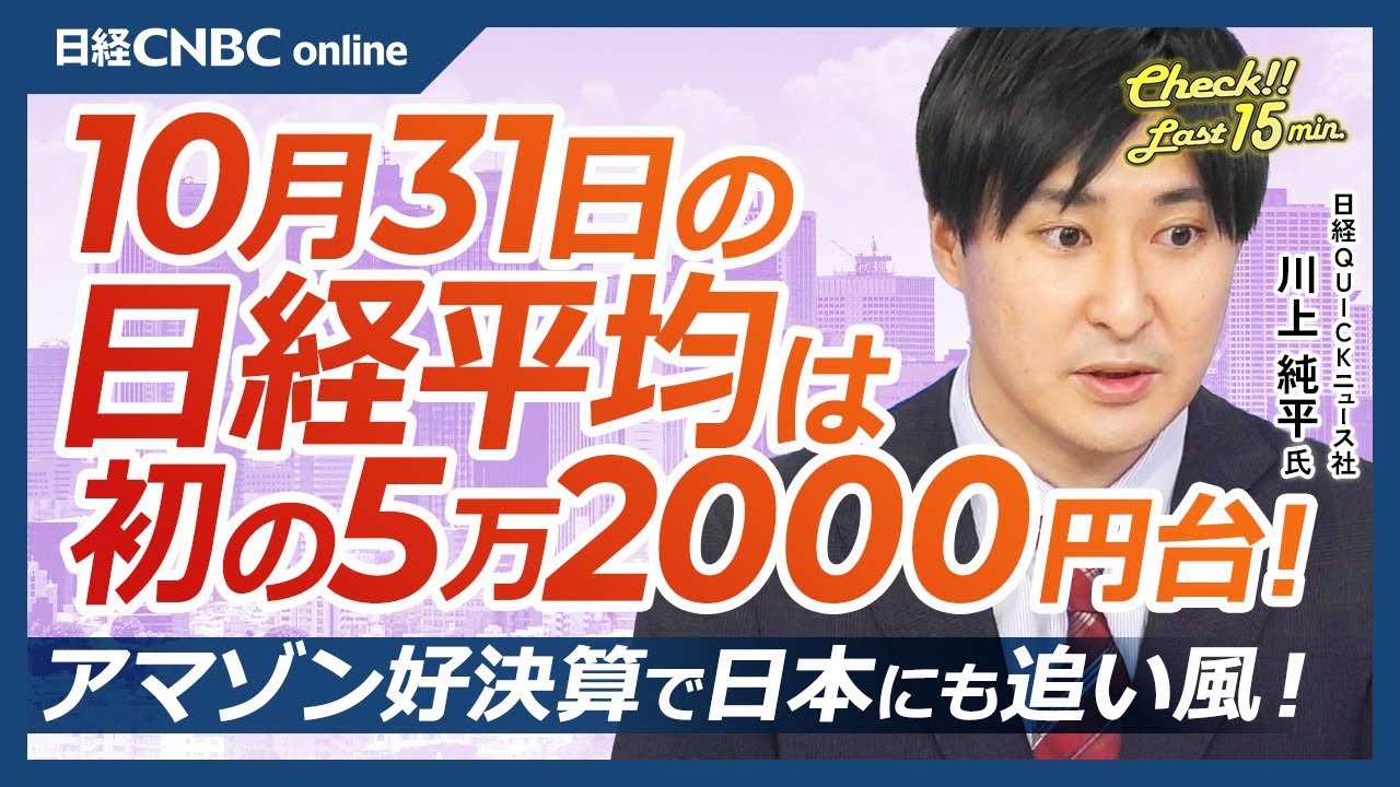 【10月31日(金)東京株式市場】日経平均株価は続伸し最高値更新/アマゾン市場予想上回る好決算で日本の半導体上昇/日立もデータセンター関連の需要取り込み好決算/日産自やデンソーなど下方修正で逆行安【日経CNBC】