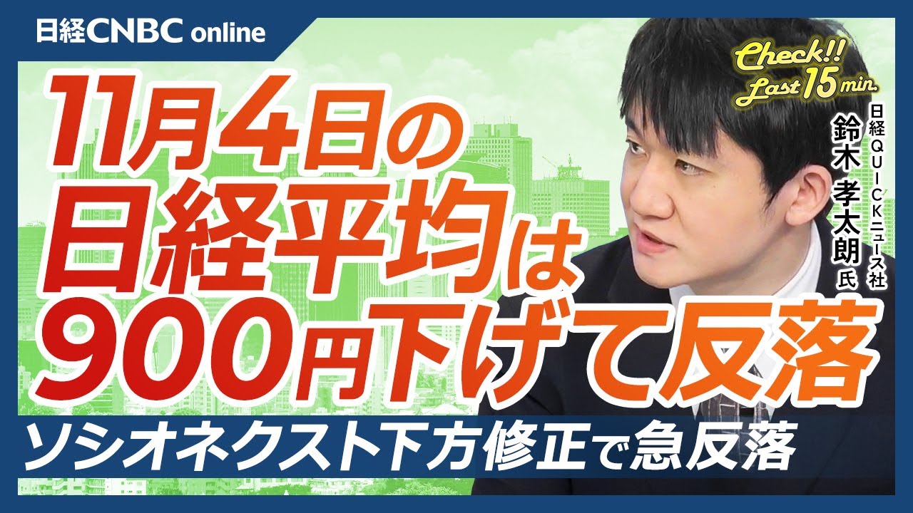 この動画では『【11月4日(火)東京株式市場】日経平均900円下げ4日ぶり反落/ソシオネクス先週ストップ高も決算発表で20%急反落/アマゾンopenAIにサービス提供で14%高/住友電の好決算で関連セクターに追い風』を学べます!