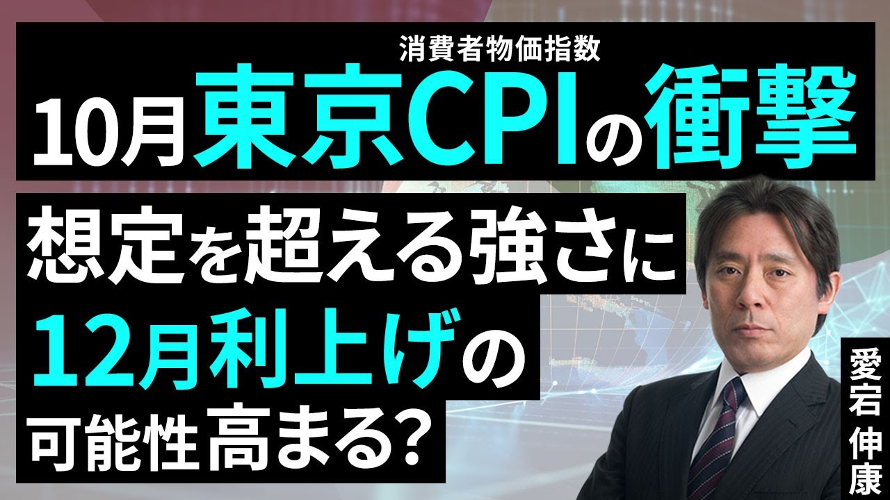 今回の動画では『10月東京CPIの衝撃。想定を超える強さに、12月利上げの可能性高まる?(愛宕伸康)』について学習できます!
