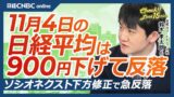【11月4日(火)東京株式市場】日経平均900円下げ4日ぶり反落/ソシオネクス先週ストップ高も決算発表で20%急反落/アマゾンopenAIにサービス提供で14%高/住友電の好決算で関連セクターに追い風【日経CNBC】