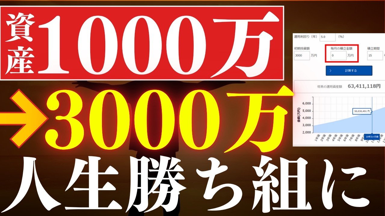 この動画では『【勝ち組へ】資産1000万→3000万で人生のステージが変わる理由。FIRE・早期リタイア戦略』を学べます!