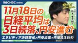 エヌビディア決算に警戒感【11月18日(火)東京株式市場】日経平均は3日続落/円安が加速し史上初のユーロ円180円台に/ビットコインも急落メタプラ11%安/ 免税店や百貨店など中国依存が高い企業に重荷【日経CNBC】
