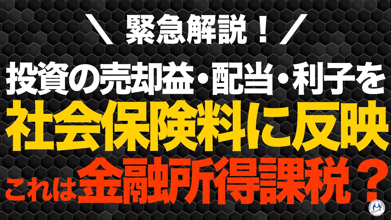 この動画では『【これって金融所得課税?】投資の売却益・配当・利子を社会保険料に反映へ。35倍の負担増も。』を学ぶ事ができます!