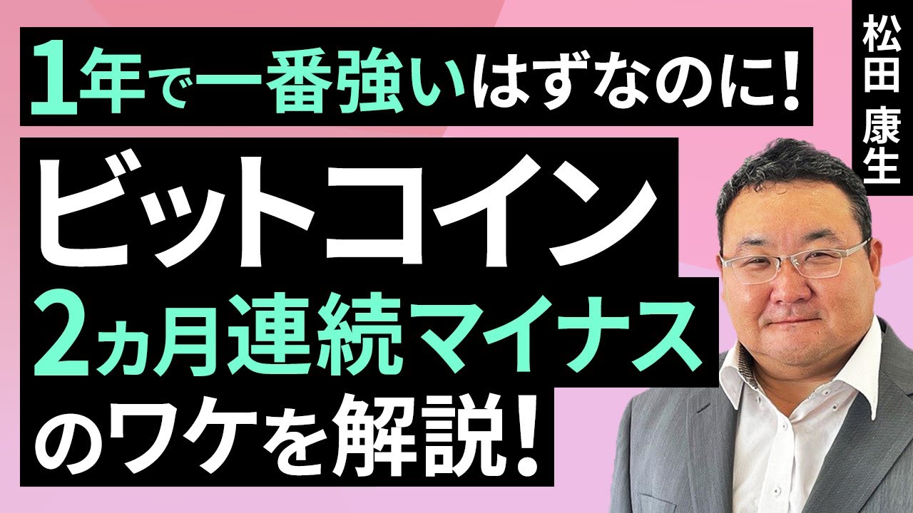 今回の動画では『1年で一番強いはずなのに!ビットコイン2カ月連続マイナスのワケを解説!』について学習できます!
