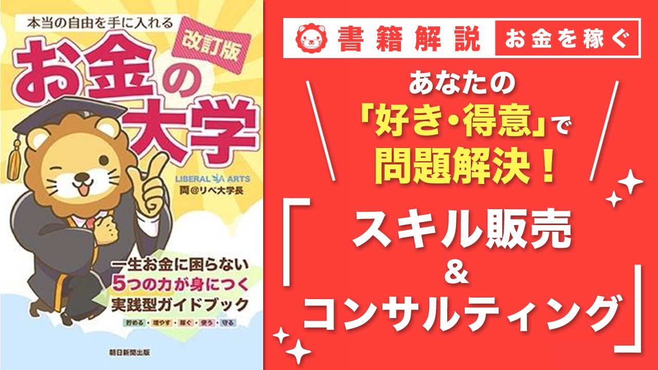 この動画では『【お金の授業 54限目】おすすめの副業の紹介 その9 スキル販売&コンサルティング「改訂版 お金の大学 P261~P263」』を学べます!