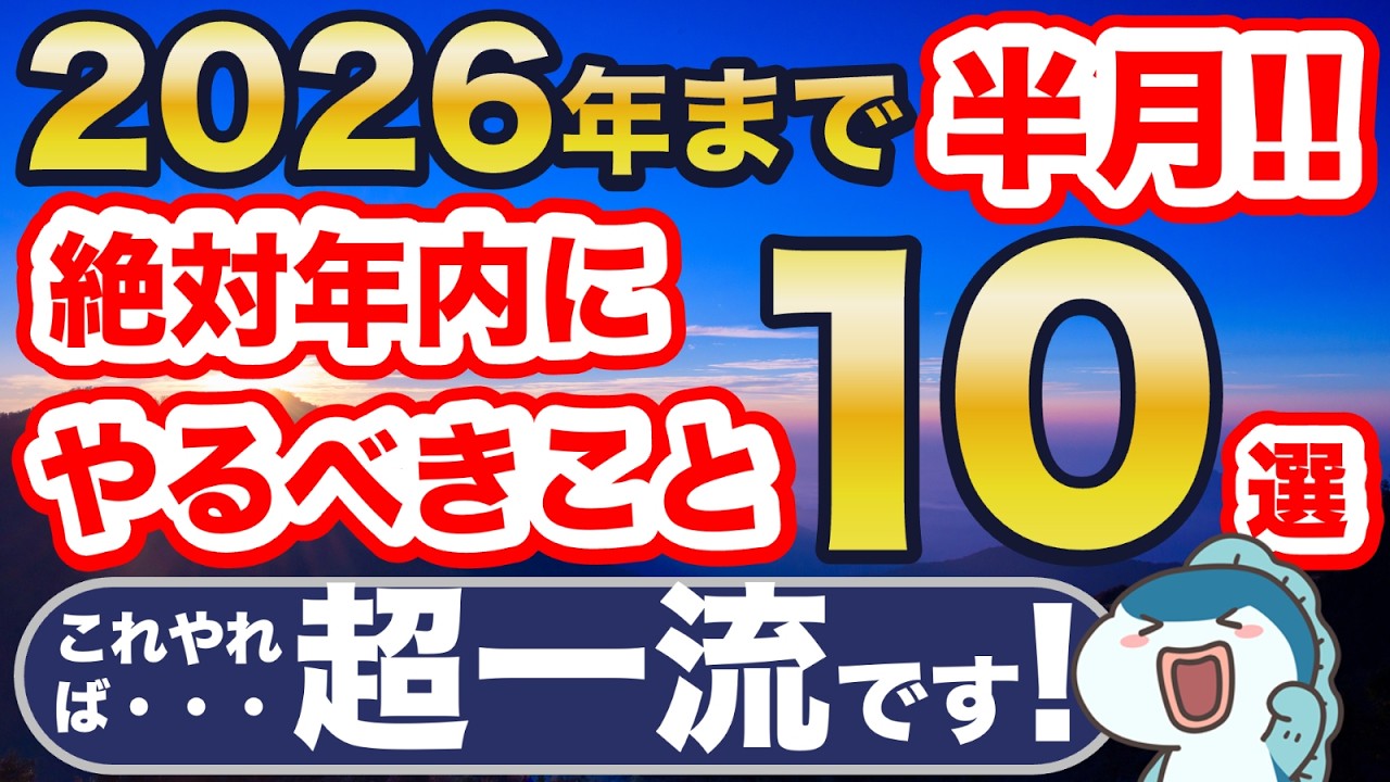 この動画では『2026年まで残り半月!年内に必ずやるべきこと10選!これで超安泰!』を学べます!