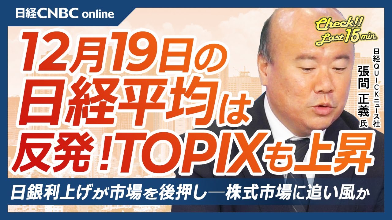 【日経平均株価は反発!|12月19日(金)東京株式市場】日銀追加利上げで日経平均一時700円超高/日銀声明『緩和的環境維持』で市場に安心感/不動産バブル以来の日経平均3年連続上昇!/AIバブルは続く?【日経CNBC】