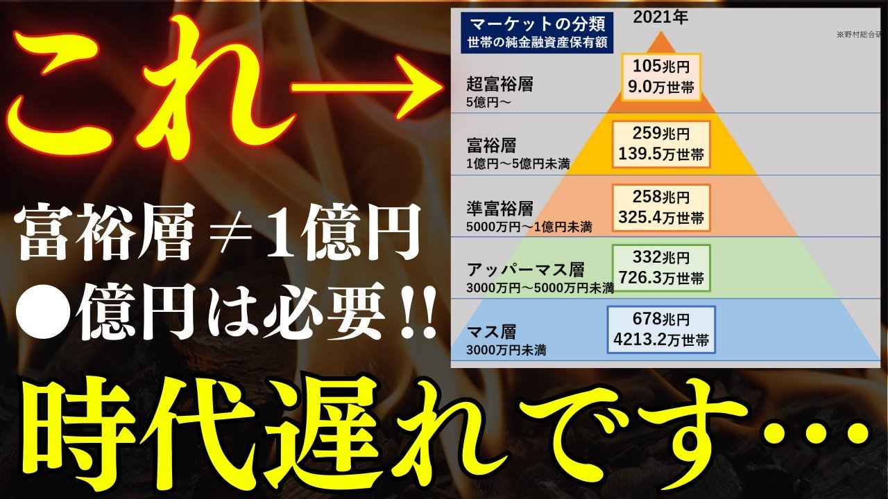 この動画では『【富裕層=1億は時代遅れ】資産ピラミッド、修正してみた…!●億は必要です。アッパーマス層・準富裕層はいくら必要』を学べます!