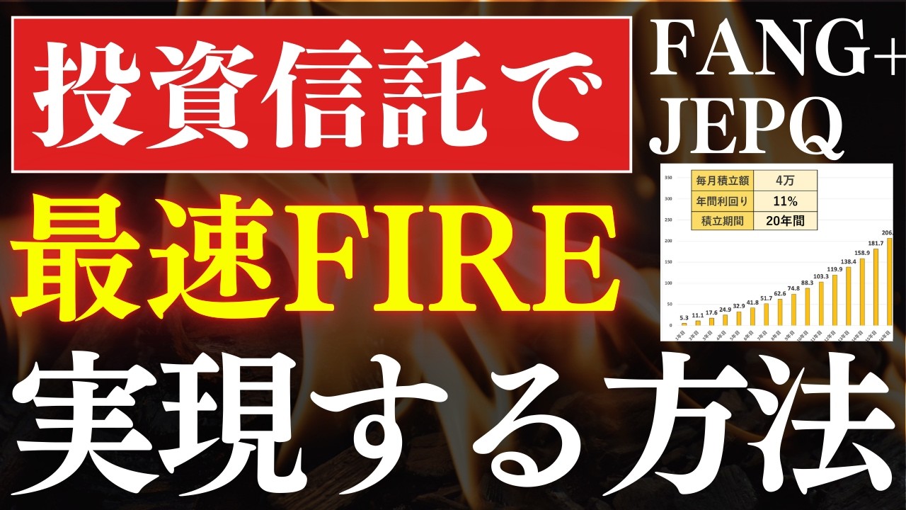 この動画では『”投資信託だけ”で、最速FIREへの投資戦略!3選~FANG+・楽天JEPQ・SCHD~』を学べます!