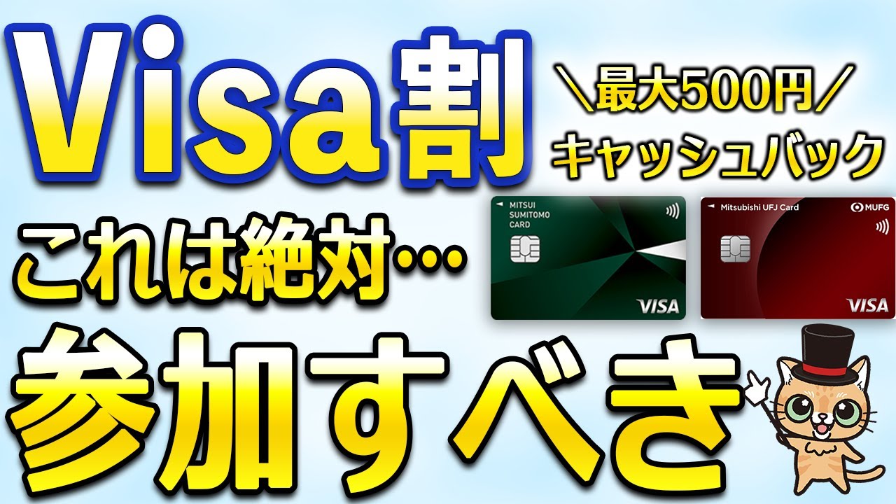 三井住友カード(NL)や三菱UFJカードも対象!Visa割最大500円キャッシュバックが超アツイ!!!【ゆずひこちゃんねる】