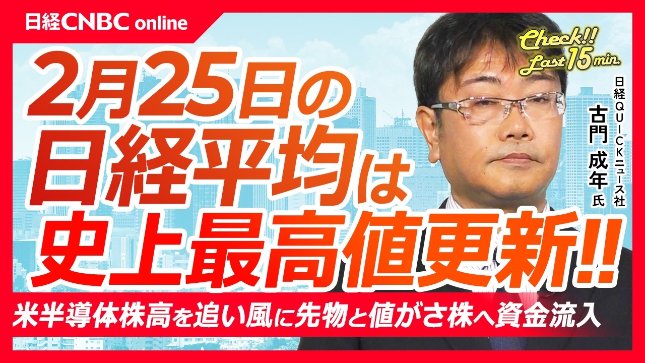 【2月25日(水)東京株式市場】日経平均株価史上最高値更新!/米ハイテク高が日本株を押し上げ、半導体・値がさ株に資金/日銀人事で利上げ観測後退へ/焦点はNVIDIA決算!数字より“株価の反応”に注目!【日経CNBC】