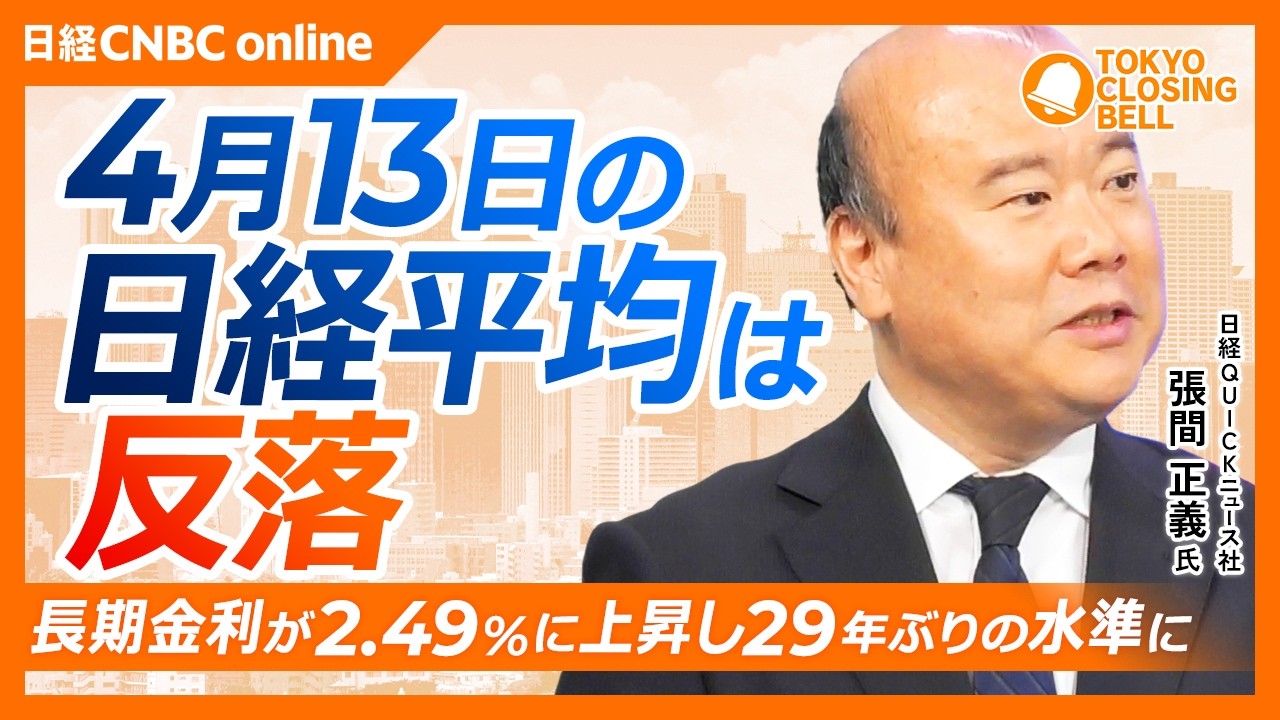 【4月13日(月)東京株式市場】日経平均株価は反落/長期金利が2.490%に上昇し29年ぶり高水準/金融庁と東証はコーポレートガバナンスの改定案を公表/SOX指数の連日上昇率は3年5か月ぶりの大きさに【日経CNBC】