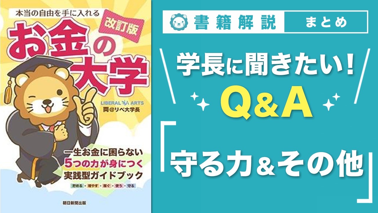 【お金の授業 71限目】学長に聞きたい!Q&A 30連発 その4(守る力&その他)「改訂版 お金の大学 P311~P313」【両学長 リベラルアーツ大学】