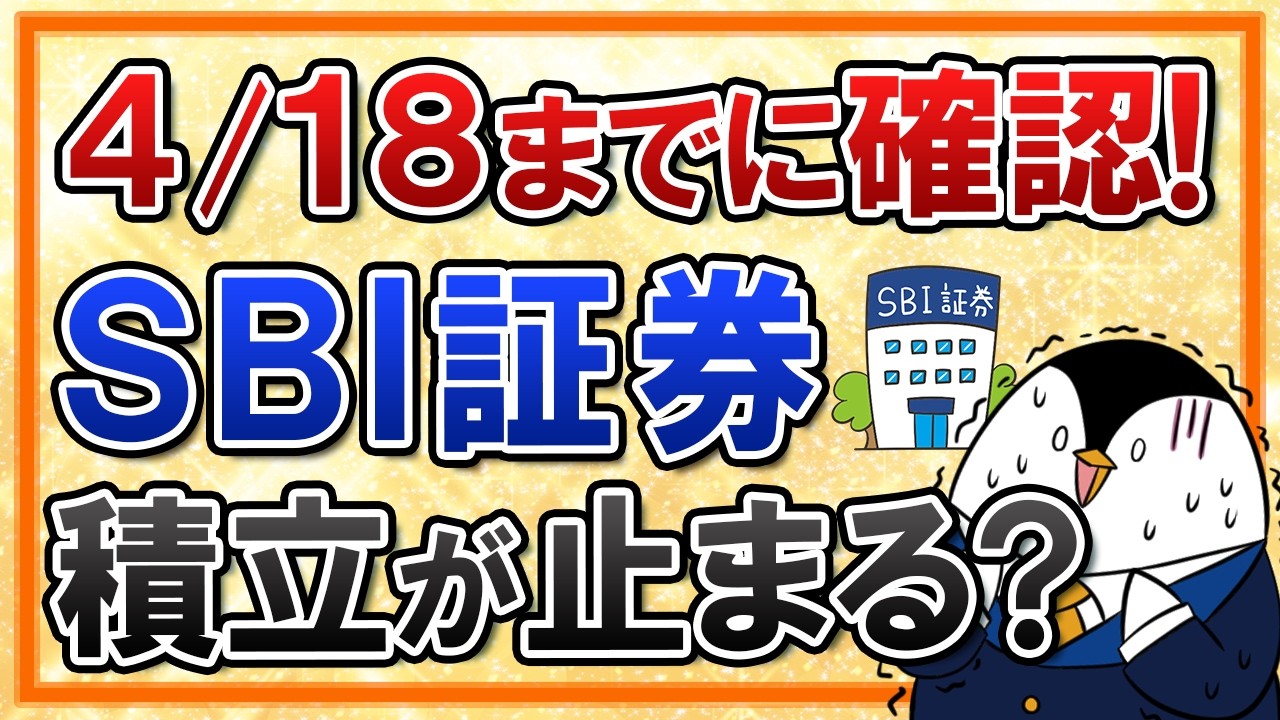 この動画では『【4/18まで】SBI証券の重要なお知らせを絶対確認!見逃すと積立が止まる?』を学べます!