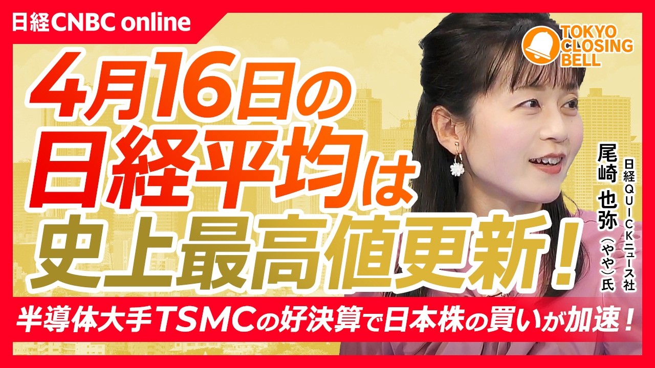 【4月16日(木)東京株式市場】日経平均株価は最高値更新で6万円も視野に!/TSMCの1〜3月期決算が市場予想を上回る/製造コスト懸念の任天堂が反発!/トレンド株は米アンソロピックとの協業を好感し急伸【日経CNBC】
