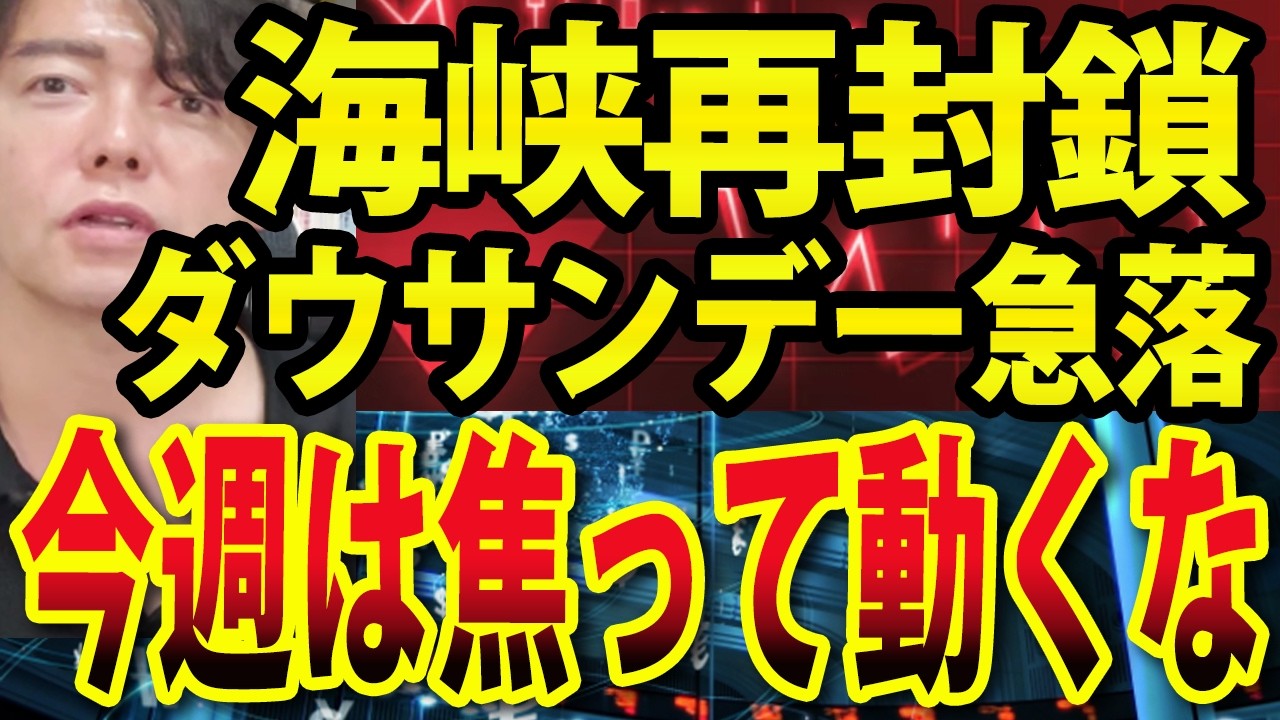 この動画では『イラン、ホルムズ海峡再閉鎖でNYダウサンデー急落、今週の日本株は焦って動くな』を学ぶことができます。