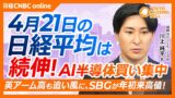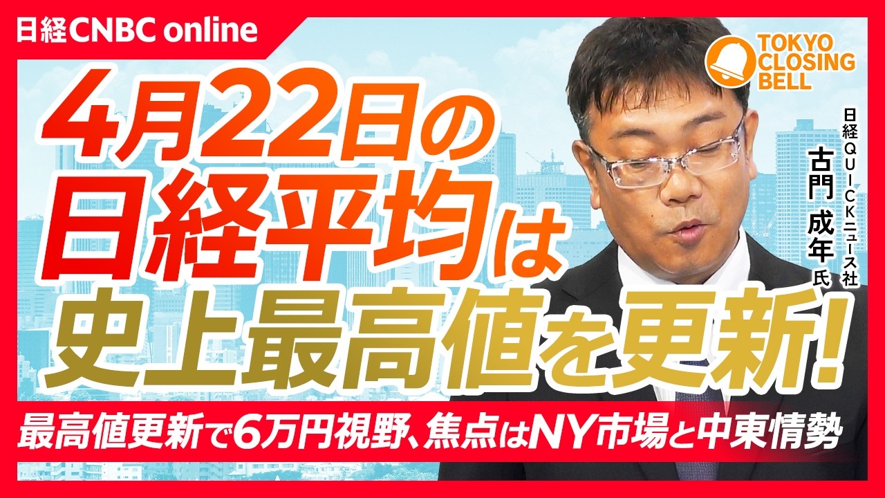 【4月22日(水)東京株式市場】日経平均株価は最高値更新!最高値更新も6万円視野、焦点はNY市場と中東情勢/生産停止報道やコスト懸念でトヨタ株安/日銀の利上げ見送り観測を受けメガバンク下落【日経CNBC】