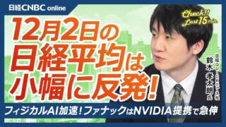 日経CNBC 【日経平均は小幅反発|12月2日(火)東京株式市場】ファナックはエヌビディア提携で急伸/長期金利1.877%と17年ぶりの高水準に/三井住友FGは目標株価引き上げ/ワークマンは11月売上好調も下落【日経CNBC】