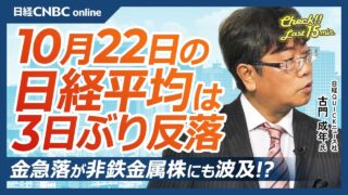 【10月23日(木)東京株式市場】日経平均株価は続落/今晩インテル決算発表/REIT指数2年10か月ぶりの高値/28日のトランプ氏来日控え対米投資関連に注目/鈴木農相発言受けコメ関連銘柄に明暗【日経CNBC】マーケット・経済専門チャンネル「...