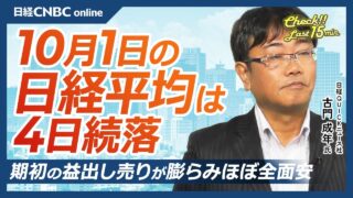 日経CNBC 【10月10日(金)東京株式市場】日経平均株価は反落/SBG、25日移動平均線との乖離が広がり過熱感意識/ファストリ、決算が市場予想上回り逆行高/セブン&アイはコンビニ不振で今季予想下方修正【日経CNBC】 【10月10日(金)東京株式市場】日経平均株価は反落/SBG、25日移動平均線との乖離が広がり過熱感意識/ファストリ、決算が市場予想上回り逆行高/セブン&アイはコンビニ不振で今季予想下方修正【日経CNBC】マーケット・経済専門チャンネル「日... 2025.10.10 日経CNBC