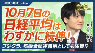 日経CNBC 【10月7日(火)東京株式市場】日経平均株価は続伸/後場は利益確定の売りに押される/核融合関連銘柄としてフジクラなど電線株に注目/ソニーは金融とエンタメで明暗分かれる展開に/今週はノーベル賞の発表あり【日経CNBC】 【10月7日(火)東京株式市場】日経平均株価は続伸/後場は利益確定の売りに押される/核融合関連銘柄としてフジクラなど電線株に注目/ソニーは金融とエンタメで明暗分かれる展開に/今週はノーベル賞の発表あり【日経CNBC】マーケット・経済専門チャ... 2025.10.07 日経CNBC